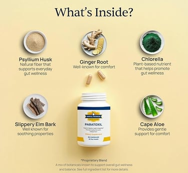 Paratoxil is a dietary supplement designed to support gut health, detoxification, and digestive balance using natural plant-based ingredients.
